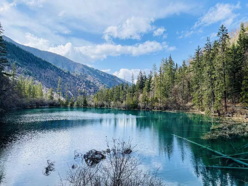 青龙海是景区的第二大海子,这里湖光山色,郁郁葱葱,林间错落有致的吊麦杉、云杉、雪松及高山冷箭竹、杜鹃树、地苔 、海风藤等等,就是一道道美不胜收的风景。