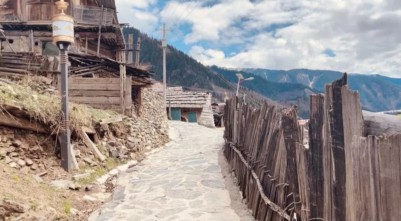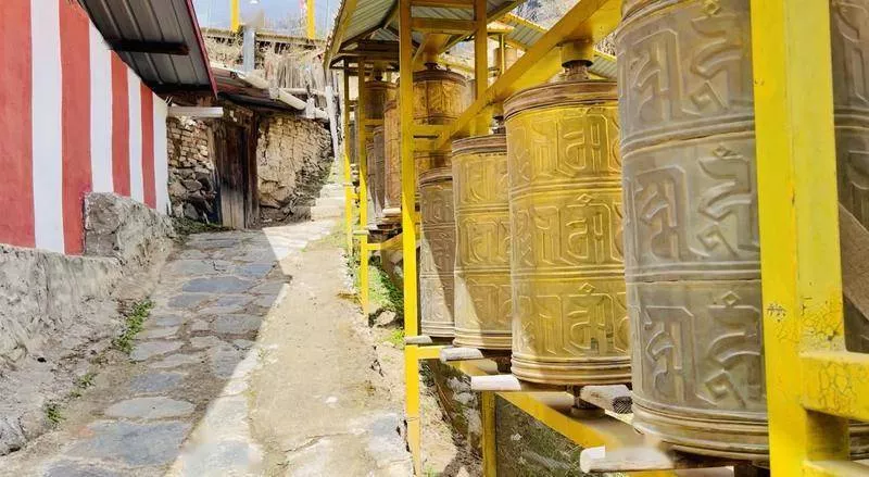 独特的民族风情藏寨、寺庙、转经筒、经幡、隆达、磨坊、晒架、天桥、篱笆、柴火堆、青稞田等众多景观烘托出浓郁的民俗风情和藏乡氛围。