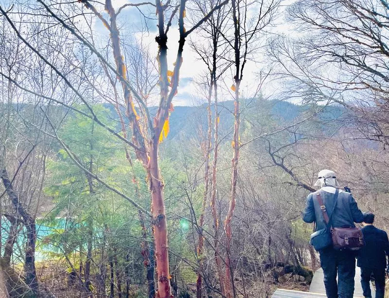 被藏族人誉为爱情树的红桦,它的树皮剥去一层又会长出一层,有点像古铜色染金的纸,在阳光的照耀下能发出灼灼的金黄色。