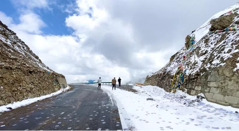 经若九路前往美丽的大录藏寨,深入了藏民族文化,大录藏寨是一个半农半牧的纯藏族聚居乡。在路上要翻越海拔接近4000米的雪山垭口。早上刚下了大雪,群峰白雪皑皑,车子似在雪山之巅奔跑,高远壮丽。