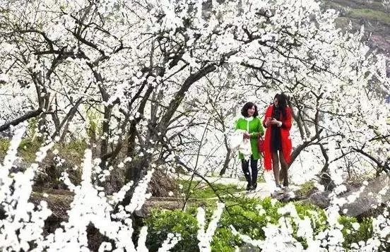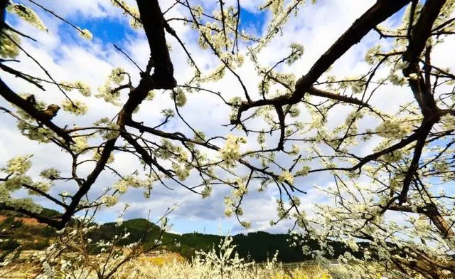 云上石漠踏春去,春风李花迎宾来。一走进佘家沟,就能看到漫山的李花迎春怒放,到处都是白茫茫的一片,远远望去犹如皑皑白雪覆盖山坡,恍然间让人有种置身雪原的幻觉。