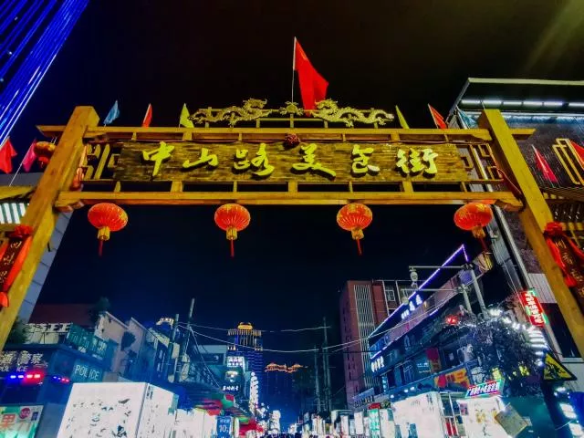 中山路美食街是南宁传统的美食一条街,云集南宁各老字号餐馆、饮食店。汇集南宁人最爱吃的老友粉、八珍粉、粉饺、鸭红、海鲜烧烤、酸品、甜品等传统美食。每晚10点后,美食街上灯火通明、热闹非常,成为南宁一道独特的风景线。