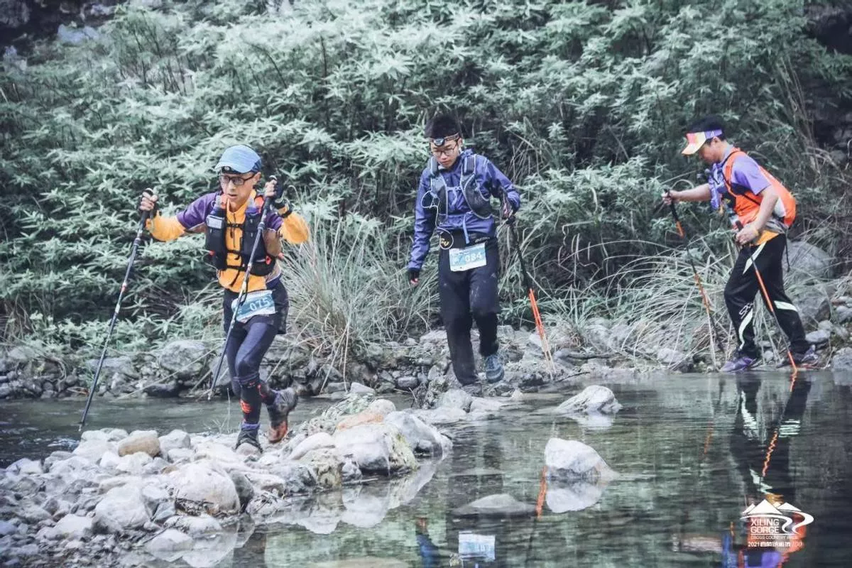 选手们从河心公园出发,经过潘家河、马家湾和南津关,进入白马洞和快乐谷,打完卡后又再次进入龙泉洞。一盏盏头灯在夜晚山林间闪动,跑过快乐谷的拉索桥,桥面晃动,运动健儿尖叫声和欢笑声响彻下牢溪。