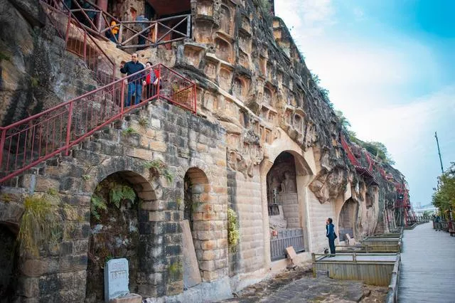 一大早,趁着人少我来到了位于江边的千佛崖景区。景区不大,环境安静优美,就在江边。千佛崖还有许多小龛,雕凿细致,人物形象栩栩如生,如身着胡服的乐工、随曲飞舞的飞天、胁生双翅的飞人、身着销甲的勇士,以及各种飞禽走兽、神话故事等等,内容十分丰富,是研究中国古代石窟艺术的宝库。直观上看很多石窟都已经风化,也有保存比较好,千佛崖透露出深厚的文化底蕴,要喜欢石窟佛像的话会感觉很值。但需要攀爬上很高的楼梯,腿脚不利索的人要小心。