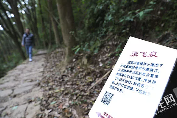 从北碚东阳高速路口下道,驱车约10分钟,进入大沱口社区,就会看到一块大石上书“张飞古道”四个红色大字。