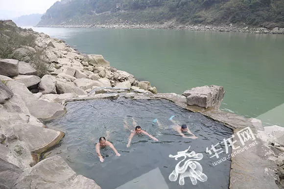 “当时大伙有钱出钱,有力出力,家里有渔船的就撑船从江对岸往这里运水泥,历时4个多月,终于建成了两眼温泉池。”李荣说,他今年67岁,5年前因肺癌动过手术后,特别注重健身和养生。他经常来这里泡温泉,因这是一处“野温泉”,他还自发担任起了这里的温泉管理志愿者,平时负责清理温泉壁及周边的环境、更换温泉水等。李荣说,这处“野温泉”给大家提供了方便,既是冬泳爱好者中途休息的驿站,又是过路游客休闲解乏的场所,所以也希望大家爱护这里的环境,不要乱丢垃圾。