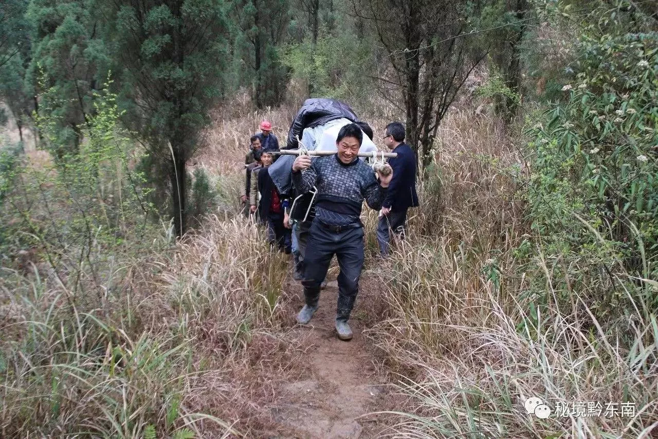 施工所需要的材料均只能由工人一步步的背上山