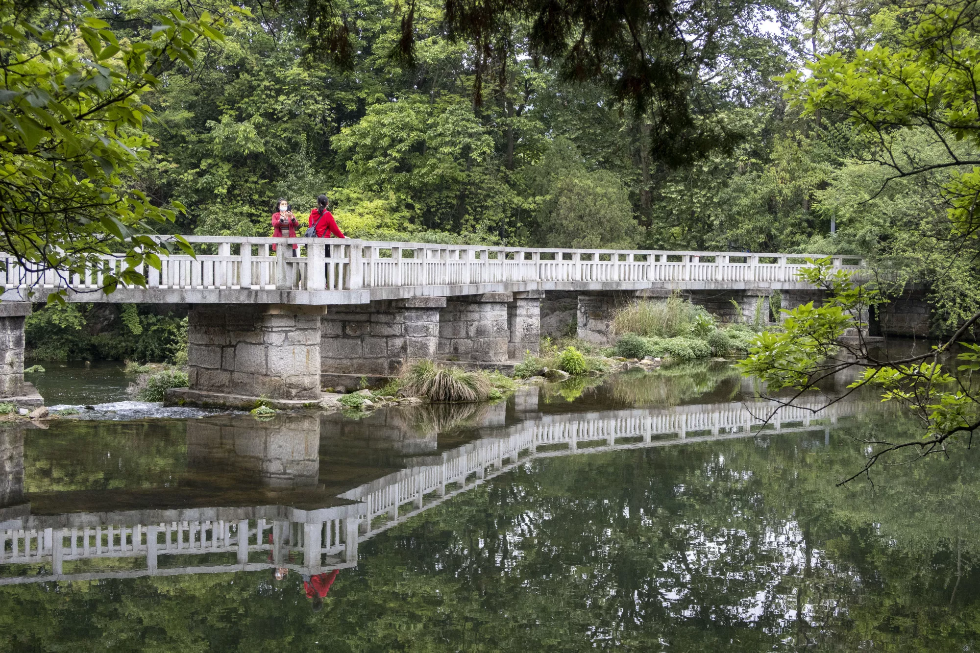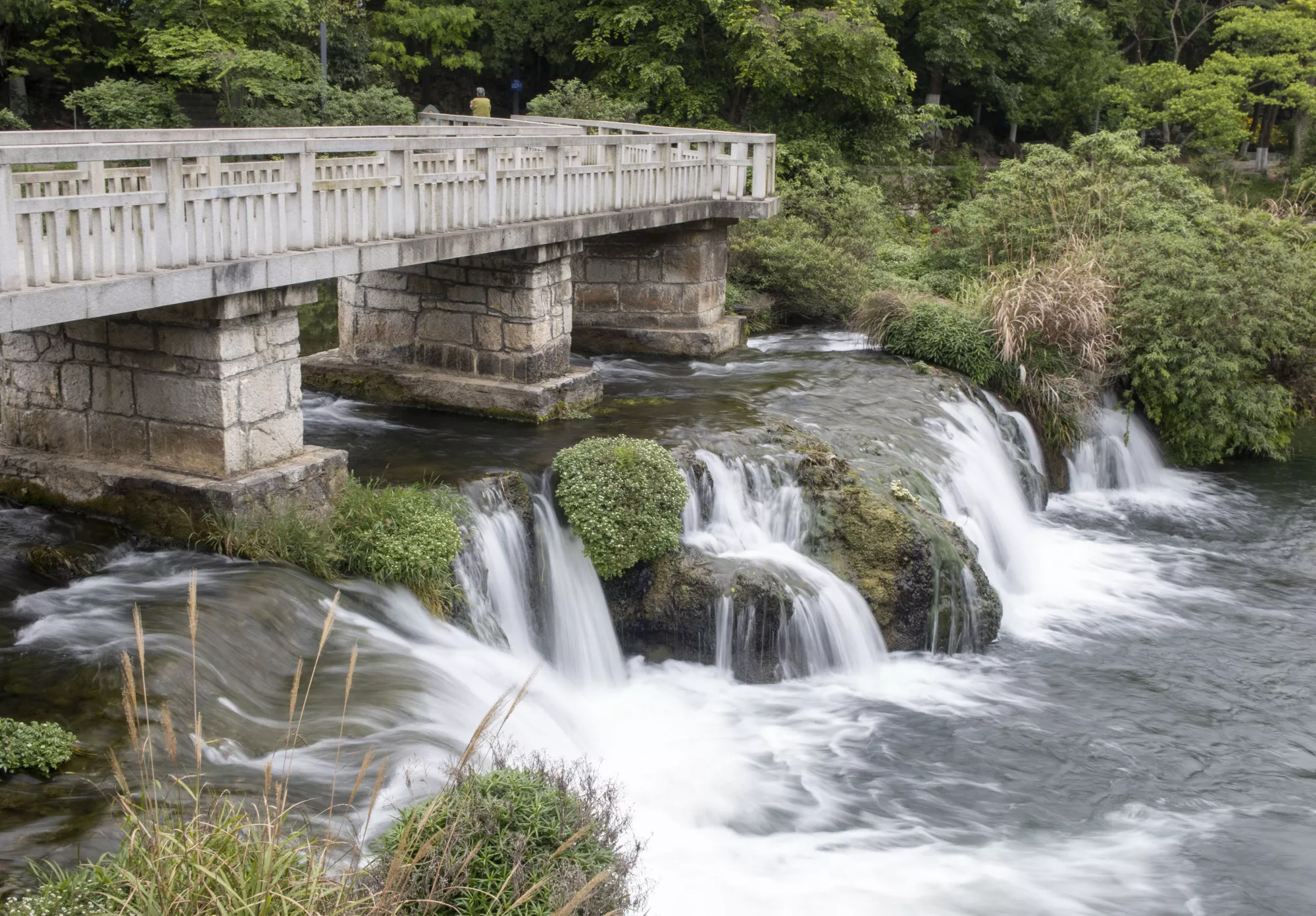 花溪公园是一个山水环绕的地方,春季来此可以看到这里处处绽放着各种花卉,夏季则是非常适合避暑消夏的地方,秋季行走在铺满梧桐树叶的黄金大道上,其景可媲美童话世界。不过公园里最美的莫过于碧绿的河水和架于水上的各种小桥,其中最有意思的是盘曲在水上的一个个石蹬——百步桥。