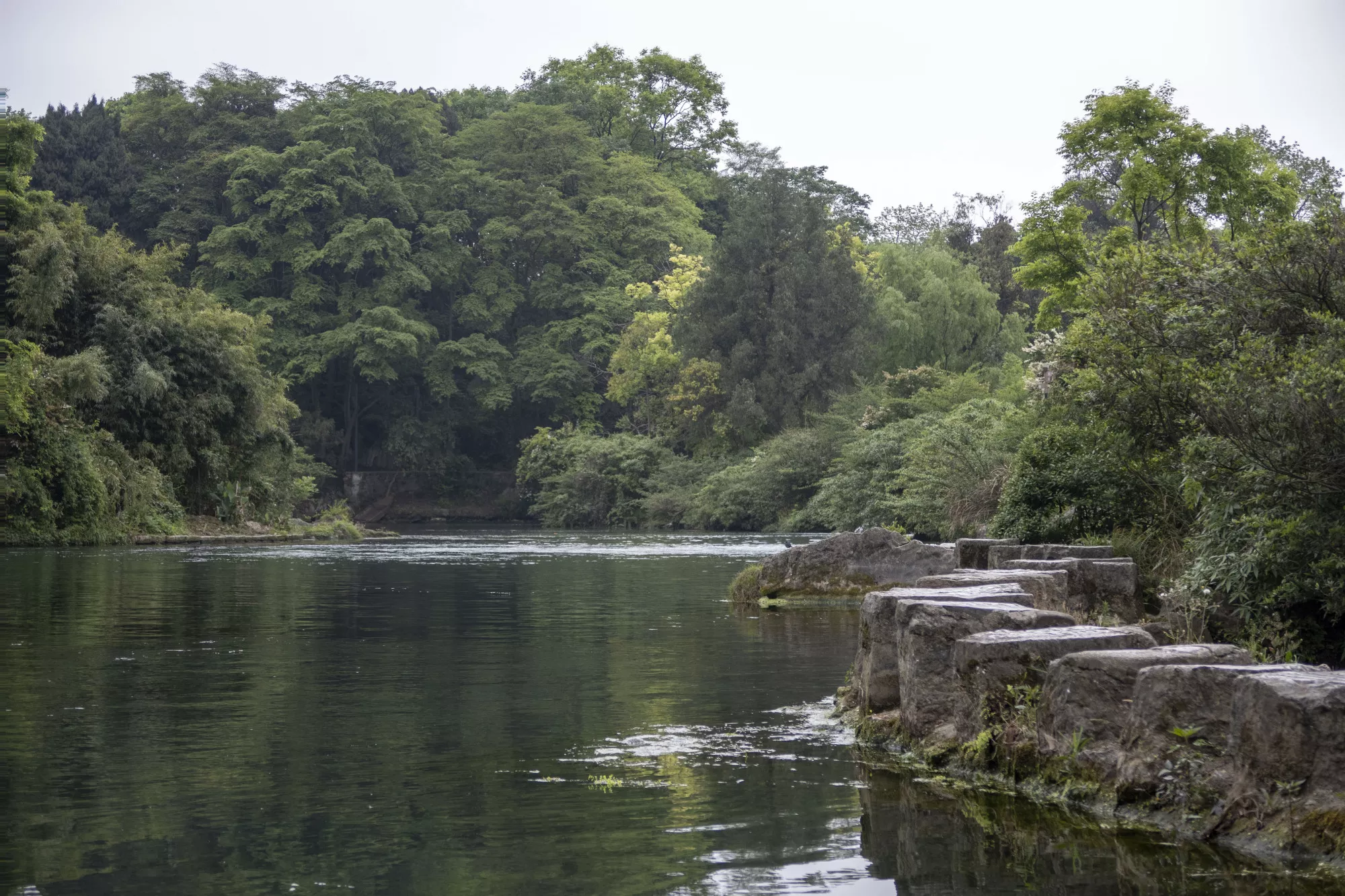 在贵阳很多地方都有:百步桥。花溪公园的百步桥也别有诗意。只见凸出的岩石立在水面,曲曲折折,一面为水,一面为瀑,踏在石墩上,快乐的像个孩子一样。这也是打卡取景的一个好地方。