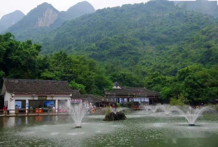 离开“美女榕”,过一个类似一线天的石门,到天星湖,天星湖有上下两个,水面如镜,水上有喷泉,这里也是旧版西游记高老庄的拍摄地。