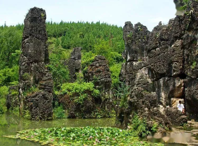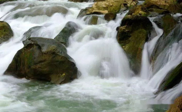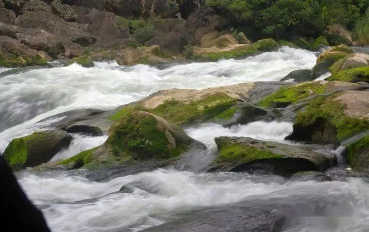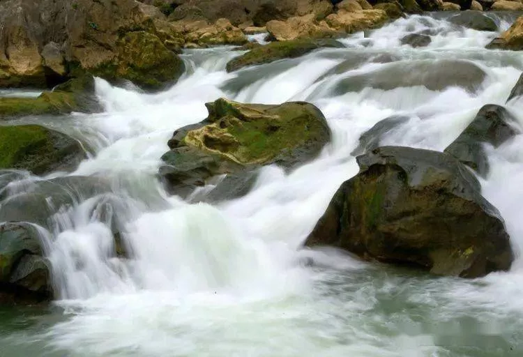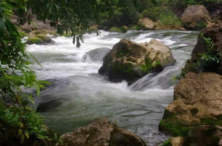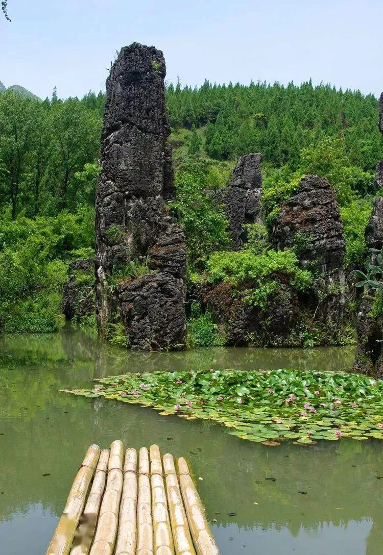 冒水潭往下,水石越走越奇,便到了水上石林。水上石林奇在石,奇在水,奇在树。与云南石林比,这里的石林或有不如,但却独具风格,石在溪中,石水相激,水花飞溅翻腾,溪边的树,也与水石相生相依。