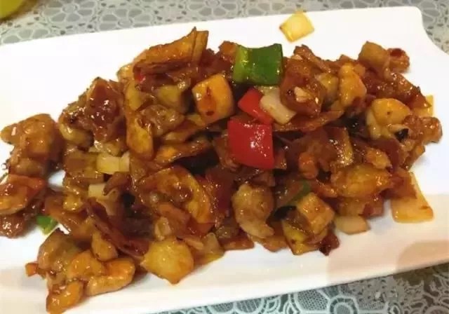 脆饼鸡丁这道菜您在别家很少能吃到。微甜、微辣,带着些豆豉的香气。鸡丁嫩,饼更是像是炸成脆皮的春饼,非常脆,包汁而不熘汁,很香脆!
