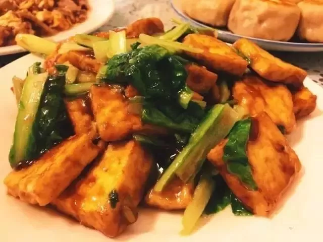 小白菜烧豆腐虽然不是名菜,却出乎意料的棒,饱受喜爱!豆腐浅度煎炸过,皮子收紧微焦,佐小白菜烧汁,收汁很满很入味,带有锅气,白菜不跑汤,虽素但香。