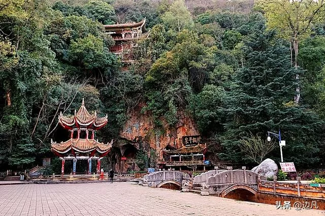 其地三山环 抱,一水中流,古木参天,浓荫匝地,雅静清幽。山、水、树、洞相映成趣,亭、台、楼、阁相得益彰。