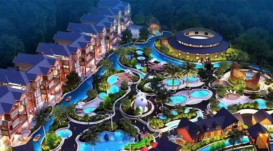 区内拥有各式汤池62个,根据"金木水火土"五行学说规划布局,按照五行与人体五脏的对应关系,打造中药调理泡池区