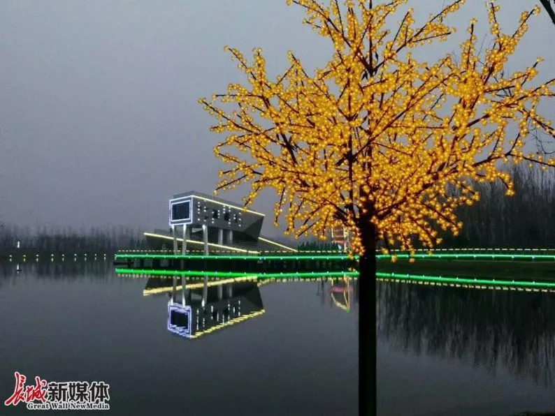 夜幕降临枣强县北湖公园流光溢彩闪烁的多彩霓虹为旖旎的夜景增色公园内市民或散步或健身近年来衡水市枣强县以创建国家级园林县城为目标积极打造生态宜居文明县城努力提升人居环境投资1.5亿元、占地500亩的北湖公园正式落成并对外开放公园是集滨河健身、水景观光、科普教育林间休憩、文化传承于一体的自然生态公园公园以生态型文化体育公园为设计出发点
