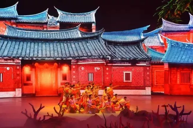 绝世舞美打造美伦美奂犹如世外桃源的闽南渔村人家,相继登场的事舞蹈.杂技.柔术等民俗表演,同时,以戏剧化的方式展示娶妻生子等闽南人的日常生活