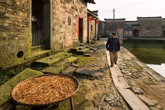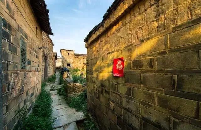 大家族的巷门别具一格,连满亲情,全村的巷弄更是别有洞天,藏满乡亲。地面是满铺的青石板,边上是排水沟,宽不过两米,窄仅两尺,曲曲折折,弯弯绕绕,配合高大的山墙,好像是戴望舒的雨巷,有走不出去的忧愁,又好像比雨巷更委婉,更深情,还藏着小时候捉迷藏的身影,还藏着邻里的亲近。