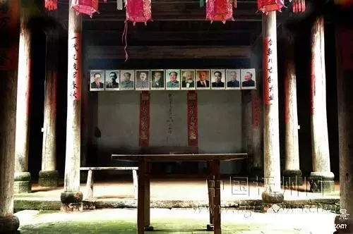 走进龚氏祠堂,规模宏大,建筑简朴,虽为金溪常见的祭祠,又经历70多年的风风雨雨,但是仍然保存完好。祠堂的正厅中央悬挂着11位伟人的相片。祠堂厅堂中有一条造型别致的风雨过廊,廊上四根大木柱中间有一方桌。一村民介绍,这是周恩来、朱德、王稼祥及红军将领发布作战命令之处。