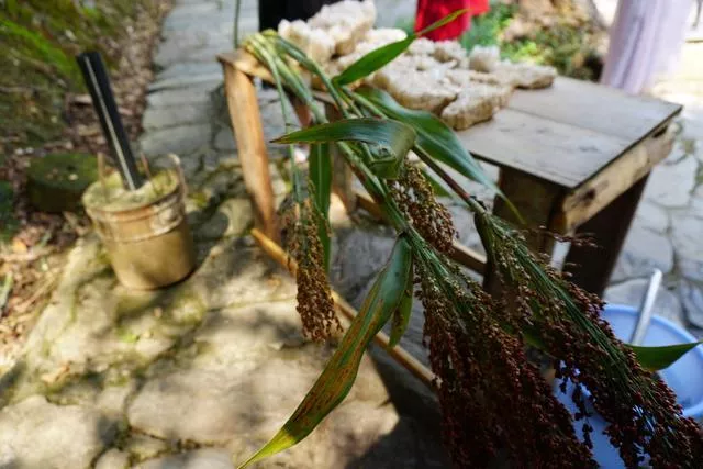 一般景区通常卖的是橘子、玉米之类的,可这里卖的水果有些奇怪,青色带叶长长的杆子,顶端有些黄穗子,还真没见过。问了问同伴,说这是高粱杆,我恍然大悟,不就是小时候扎扫帚用的东西吗,这也能吃?