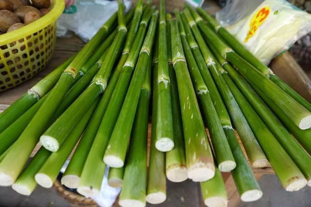 一问价格,剁好的5块钱三小截,经过一番讨价还价,1块钱一小截成交。迫不及待地尝了尝,和甘蔗味道差不多,水分较足也挺甜,就是皮有些不太好咬。