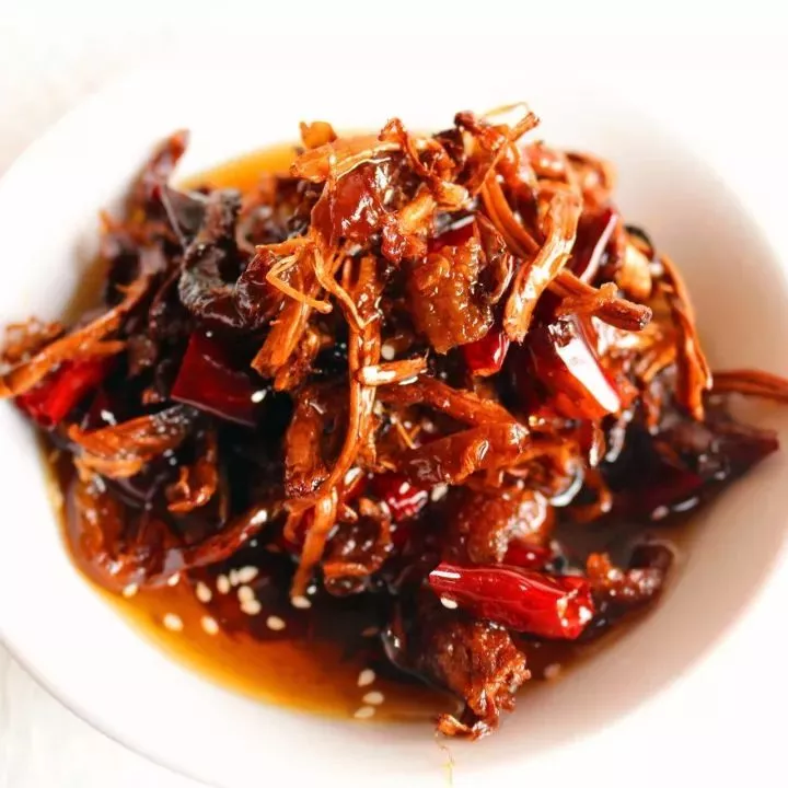 鸡枞油采用大山深处的野生鸡枞,选用上等菜籽油、新鲜花椒、蒜、辣子、精盐等精制而成。