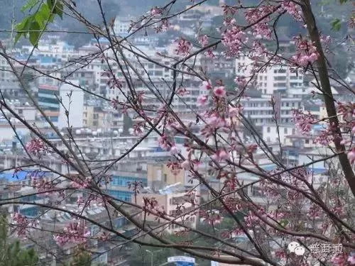 冬季,樱影下的墨江城