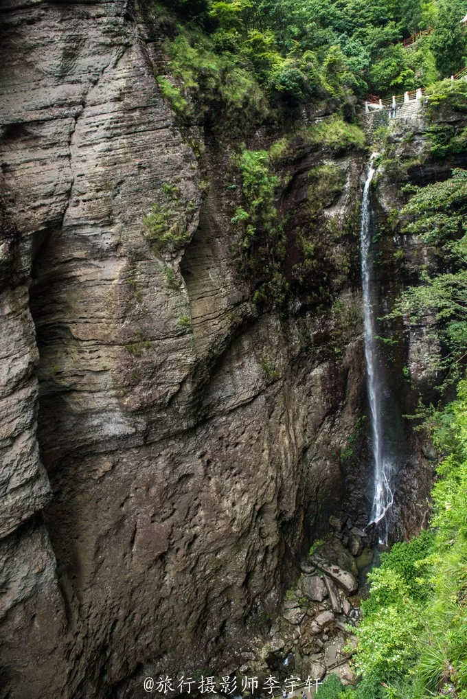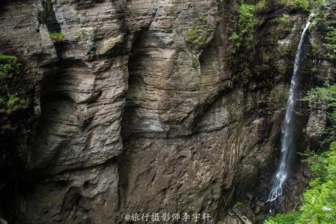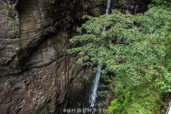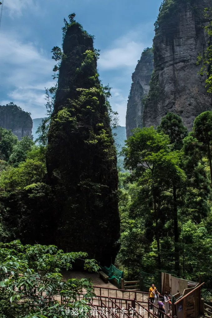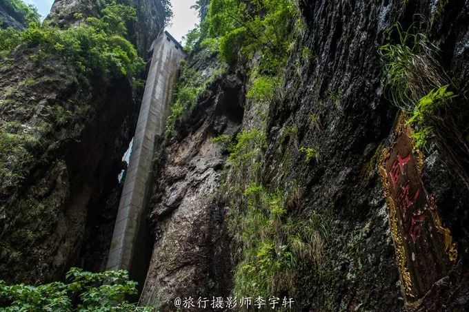 裂罅将巨岩一分为二,如巨斧劈开,狭不盈尺,为山中一大奇观;