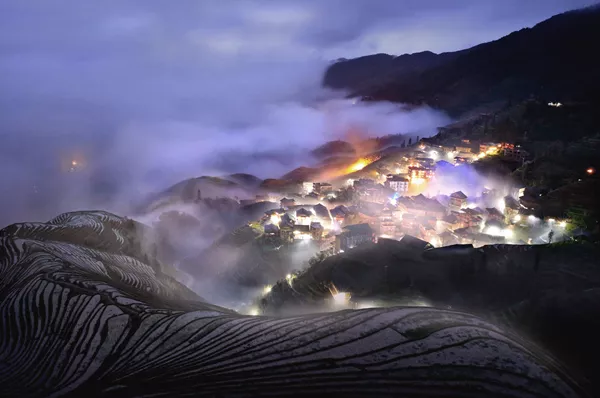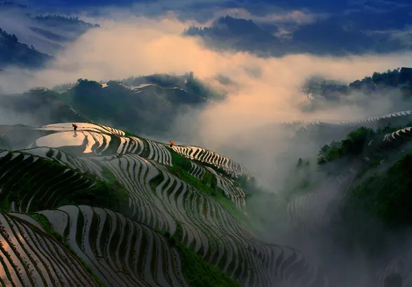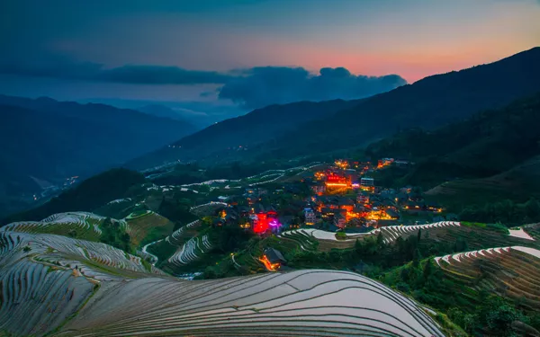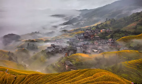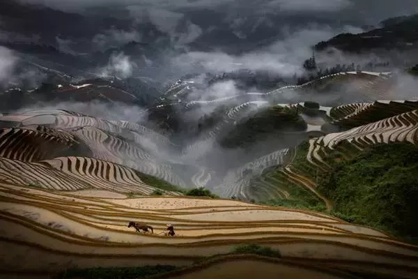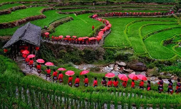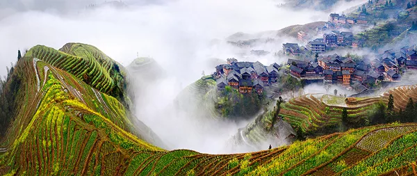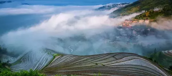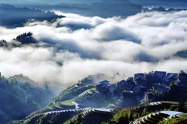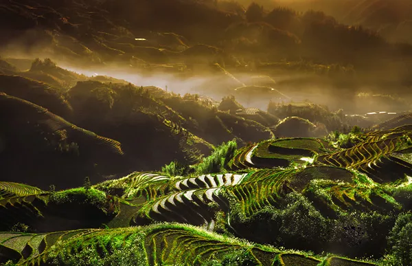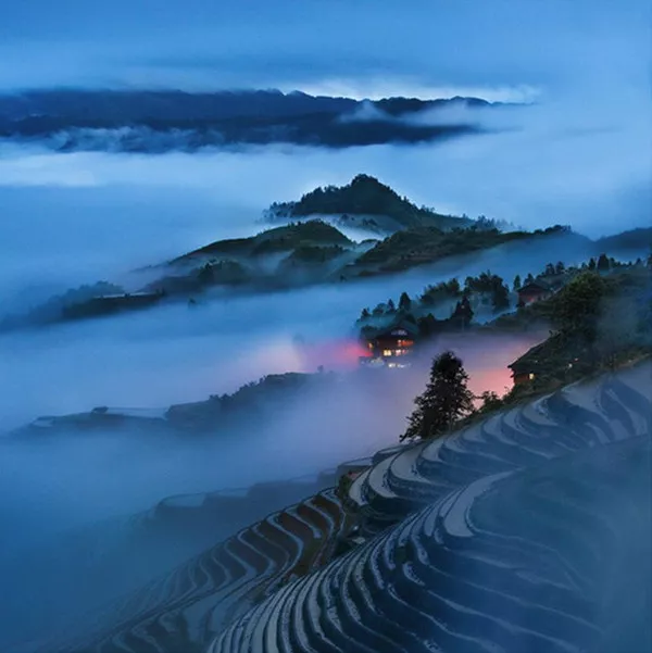 龙胜古称桑江,境内有"天下一绝"的龙脊梯田景观。龙脊梯田分为平安壮寨梯田和金坑红瑶梯田,平安壮寨梯田有“七星伴月”和“九龙五虎”两大著名景观,金坑红瑶梯田有“西山韶乐”、“大界千层天梯”和“金佛顶”三大著名景观。这里的壮、瑶民族世世代代居住在青瓦木楼之中,淳朴善良。金竹壮寨被联合国教科文组织称为北壮的楷模;黄洛红瑶寨获上海大世界吉尼斯集体长发村之最;龙脊古壮寨至今保留着许多文物古迹。境内还有被誉为“人间瑶池”的龙胜温泉、被称做“动植物王国”的花坪国家级自然保护区、“长寿养生天堂”的彭祖坪景区等,春夏秋冬四季宜人,是摄影创作的理想之处。本期美丽中国就随以下这些获奖的静态影像去领略一番龙胜的大美。