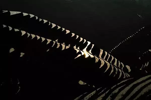 梁民语:几百年前,迁徙到龙胜的山民通过原始的刀耕火种开垦梯田和家园。作为龙的传人,他们祖祖辈辈在此扎根,凭借血汗与智慧,筑造了心中的“龙脊”和图腾。一个雨后初晴的夏日,我在“九龙五虎”观景点,驻赏云雾中若隐若现的山寨和梯田。突然,蜿蜒的山谷中升腾出一片浓雾,层层梯田化成一道道鳞片,山脊宛若一条腾云驾雾的巨龙。我为之一颤,利用中焦镜头,减0.7挡曝光,凸显龙脊的纹理和云雾的质感,通过接片合成宽画幅,成就我寻觅已久的“天上龙脊”。