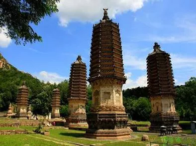 站在塔林,请大家分别朝北、向东、往南远眺,北峰上的大佛愈来愈显清晰。每天早晚,东峰朝阳喷薄四射,弯月散发银光,分别横越晴空星汉。四周的峰峦峡谷,山林密布,越发显得鲜翠碧绿,附近的清涧溪水,“哗哗”之声不断传来。不禁使人想到这些发愿往生佛国净土的高僧们,虽然已经涅槃、灭度,却仍然在不离不弃的护佑大佛、坚守蒙山,日日夜夜迎送朝阳星月,时时刻刻念诵“阿弥陀佛”,无论仙凡生死,仿佛还在进行着引导、普化凡间大众往生西方净土极乐世界的事业,不觉更加令人肃然起敬。