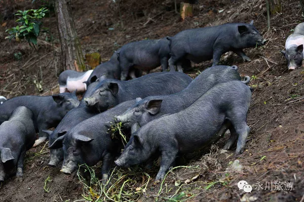 森林放养的跑山黑毛猪、藏香猪、小香猪为游客提供优质的生态美食