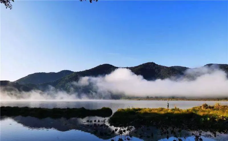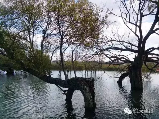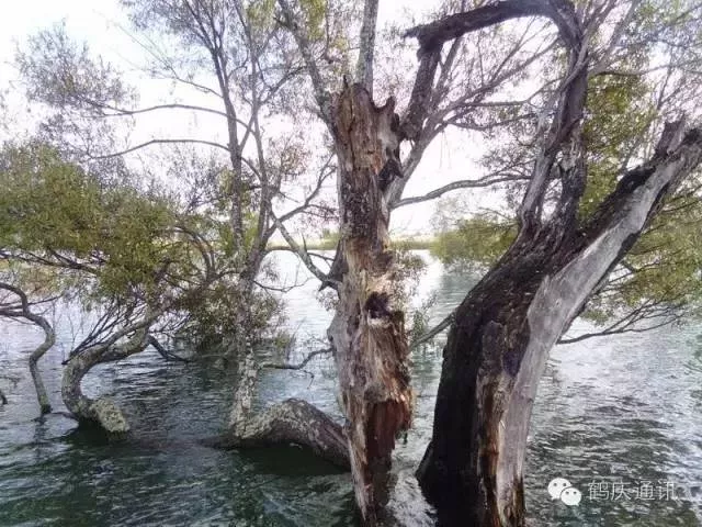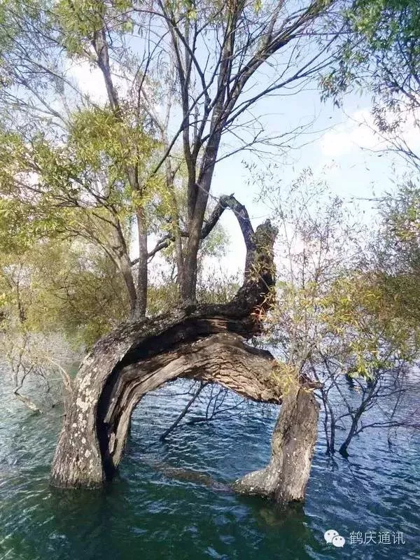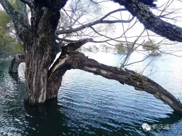 那些被水淹没的树,低处的枝干不见了,像一柄又一柄的扇面立在水上,像开屏的孔雀把头深埋水里。如果光影恰好,能看到倒影的话,疏疏朗朗的枝桠形成一个又一个的半圆,水下面的半圆呼应着水上面的半圆,背景是隐约的山,近景是平静如镜的水,这如何不是一帧岁月安好的最美风景。