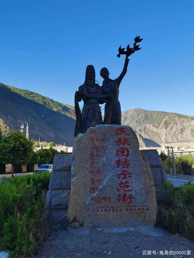 早晨从郎县出发,穿过县城里唯一的一条街——福州街(从街名就可以判断这里是由福州援建的),街头树立着这尊雕塑。