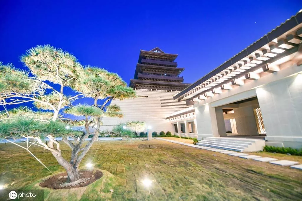 目前,连廊部分的装饰灯已经点亮,在黄色的装饰灯的衬托下,连廊和黄河文化展览馆更显庄重和汉唐韵味。