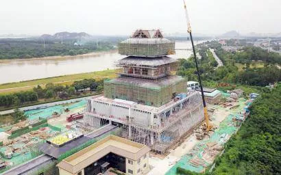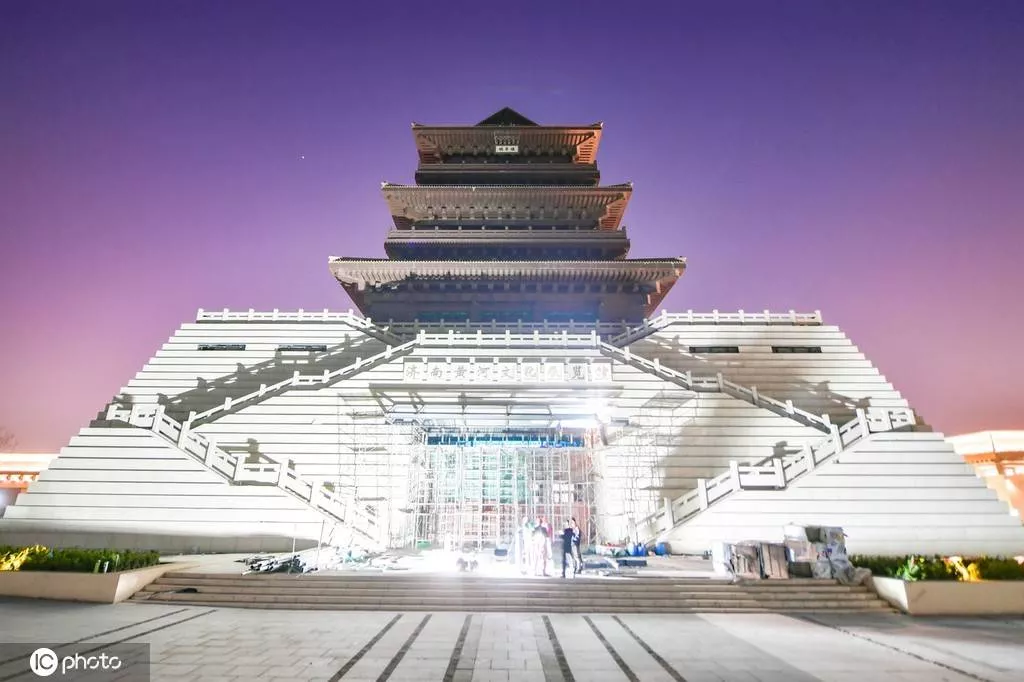 主展馆建筑层数为地上5层,总建筑高度49米,其中观景平台高度38米。工程整体建筑采用汉唐风格,以稳重内敛的气质,呼应了至大至刚的黄河文化。项目建成后,将成为济南黄河畔的制高点,市民和游客不仅可以登高眺望黄河,还能同时一览华山与鹊山的景色,为我市加快建设黄河流域中心城市,充分展示黄河文化、济南文化提供了一个崭新的窗口和平台。(本报记者崔健摄)