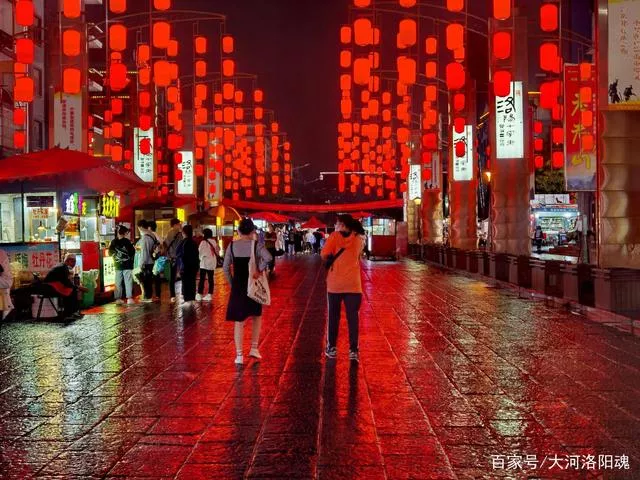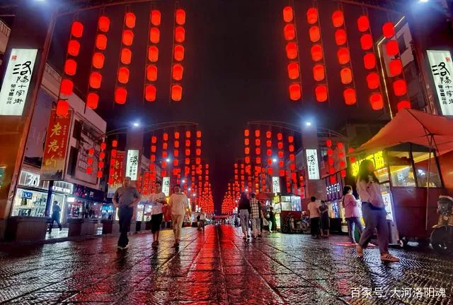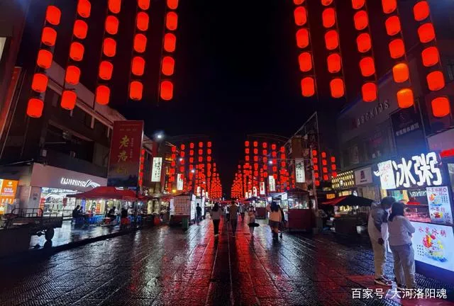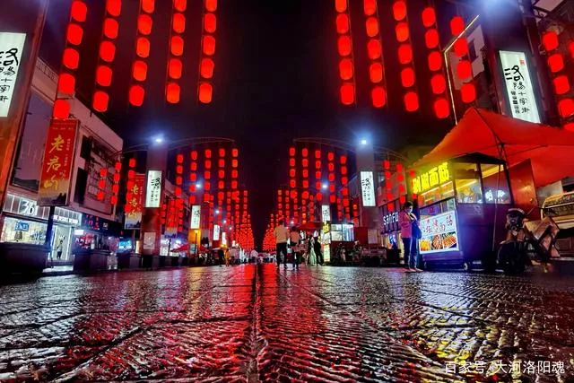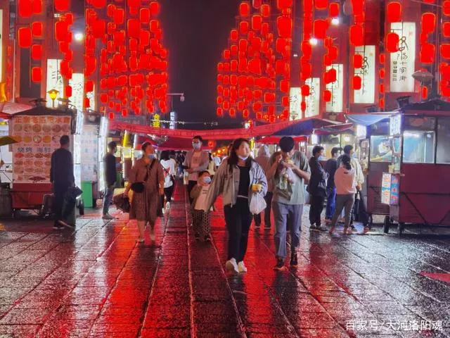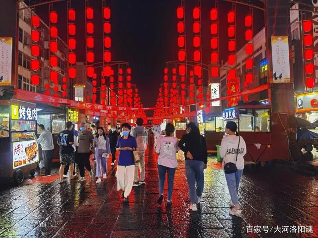 洛阳老城十字街恢复,雨夜中的美食街尽显别样风情,诱香使人馋涎