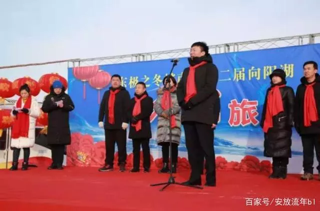 美丽的向阳湖畔白雪皑皑,迎风飘扬的旗帜和气球让整个湖面充满了活力。为了调动群众们的热情,县文体广电和旅游局精心组织了一场文艺演出,当地的群众还扭起了欢快幸福的大秧歌,用最热情的方式欢迎八方游客的到来。