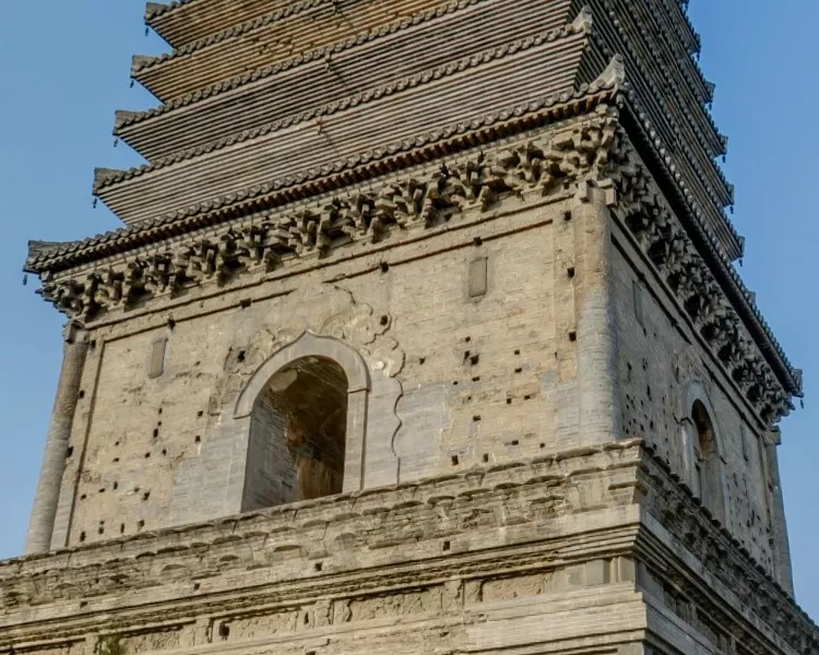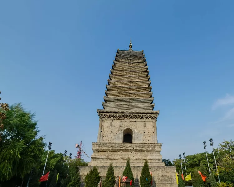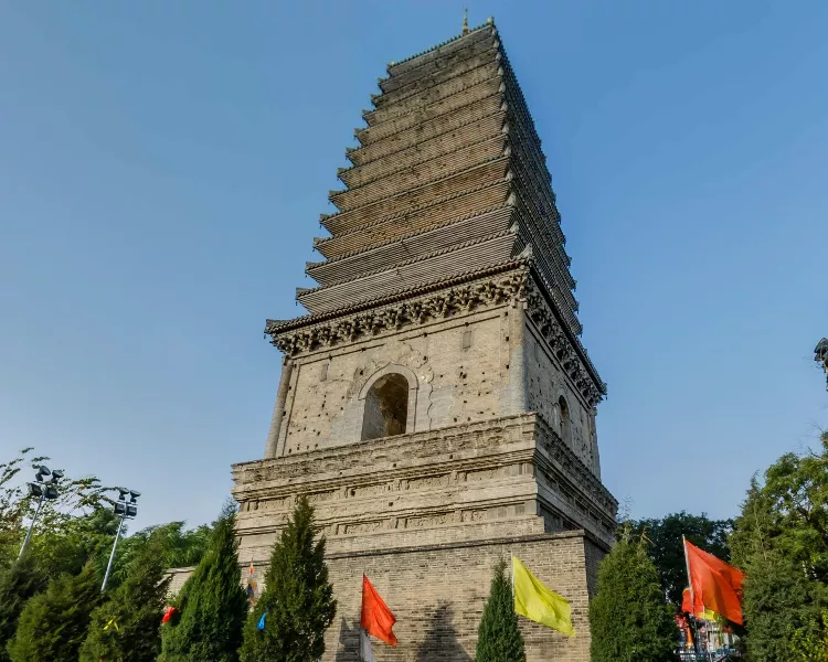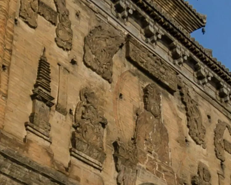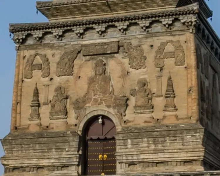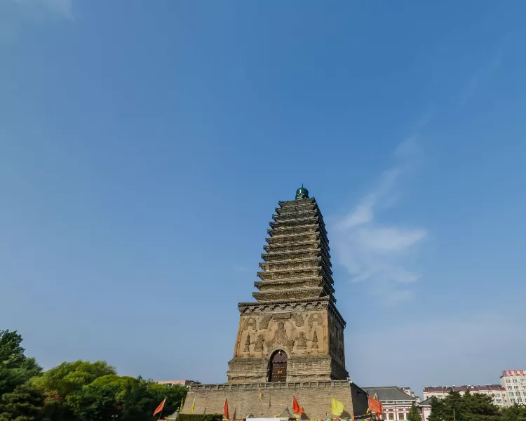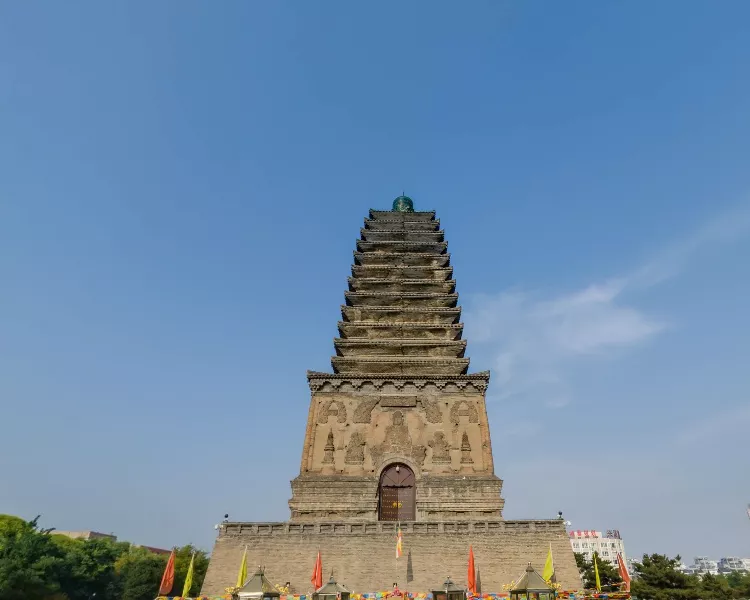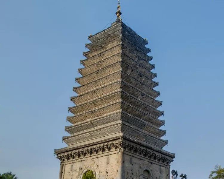 北塔高38.7米,是一座空心十三级密檐式砖塔。北塔四面刻着栩栩如生的佛像,佛塔,佛碑,佛光普照!
