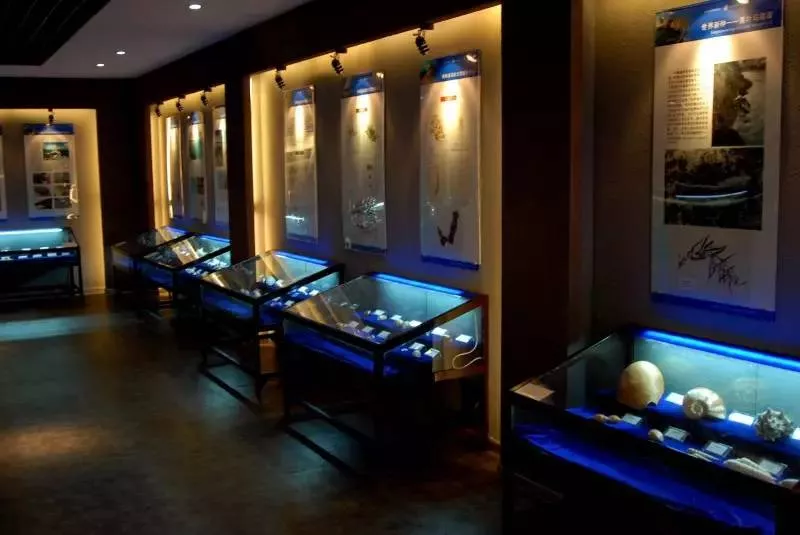 贝藻王国展览中心始建于1998年6月,展馆以场景照片与文字相结合的展板、由南麂本地种类与各海区具有观赏性的贝类,按门类、分展柜进行展示。