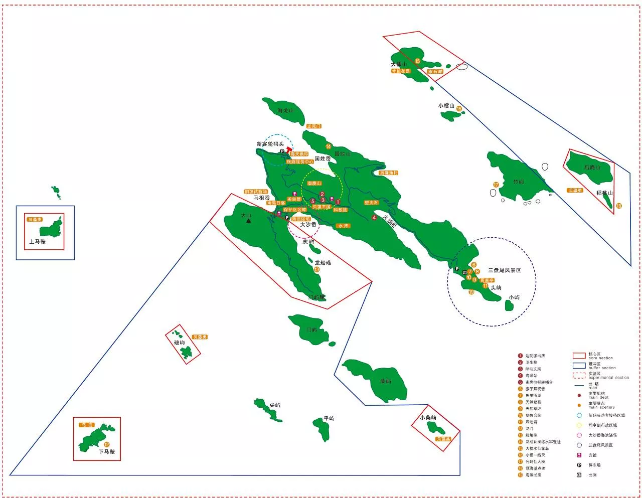 海滨浴场 → 虎屿雄姿 → 大山和南麂山(南麂日出观赏点) →保护区区碑