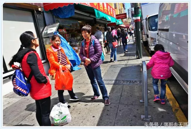 下午2点多,唐人街上穿着羽绒衣的华人正在聊天。