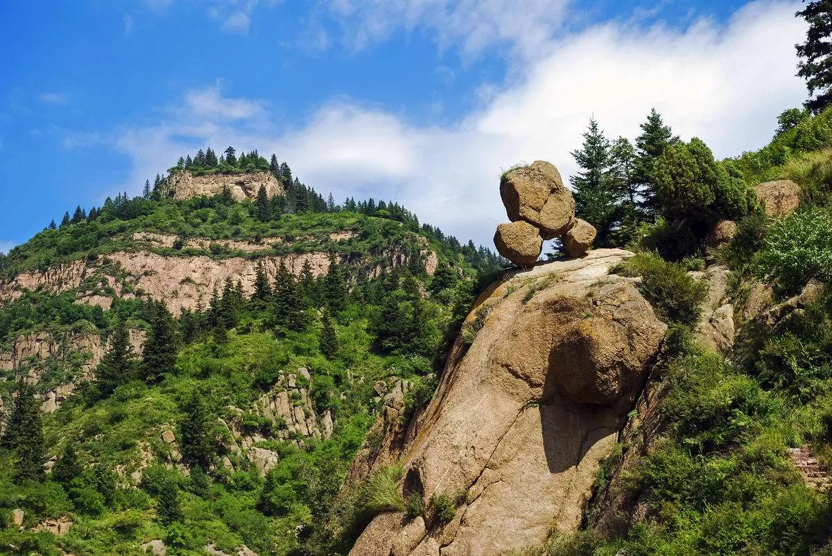支锅石:支锅石是管涔山的孕灵结秀之所,镇山定河神石,早在清代便被列为宁武府古八景之一。三块巨石叠立在30度的山崖上,是风化形成的花岗岩球状奇石,看似“危如累卵”,实则“岿然不动”。从不同的视角观察支锅石,可以看到6种不同的景观,这就是神奇的“一石六品”:三星高照、点将神台、镇魔神石、支锅奇石、象顶一品、汾神现圣。这“一石六品”好像一部精彩生动的《台骀治水》连环画,将台骀治汾的大功大德讲述了千千万万年。