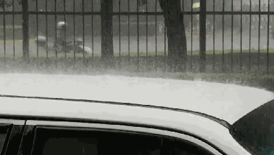图:车也冲刷得透透的,人也湿得透透的