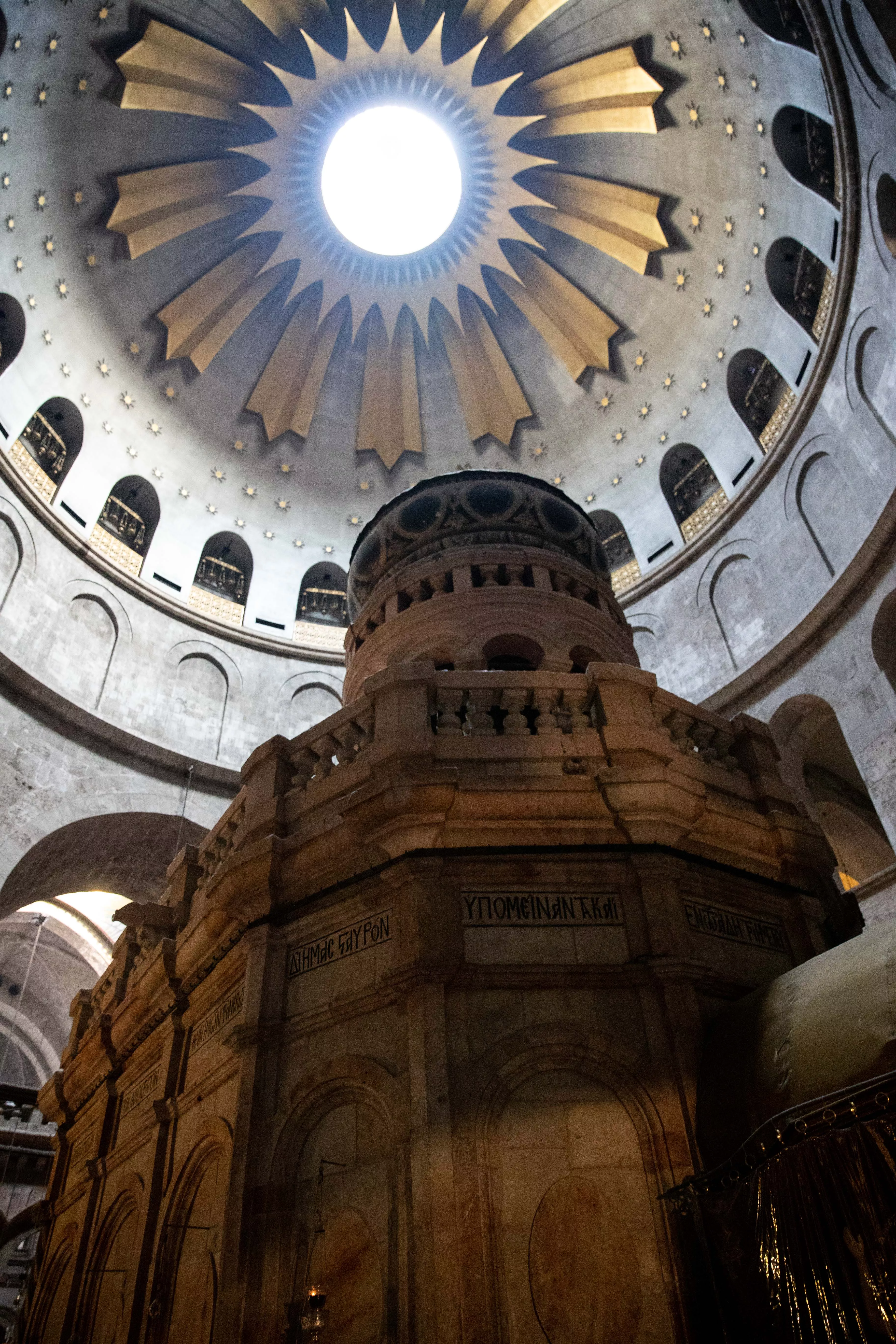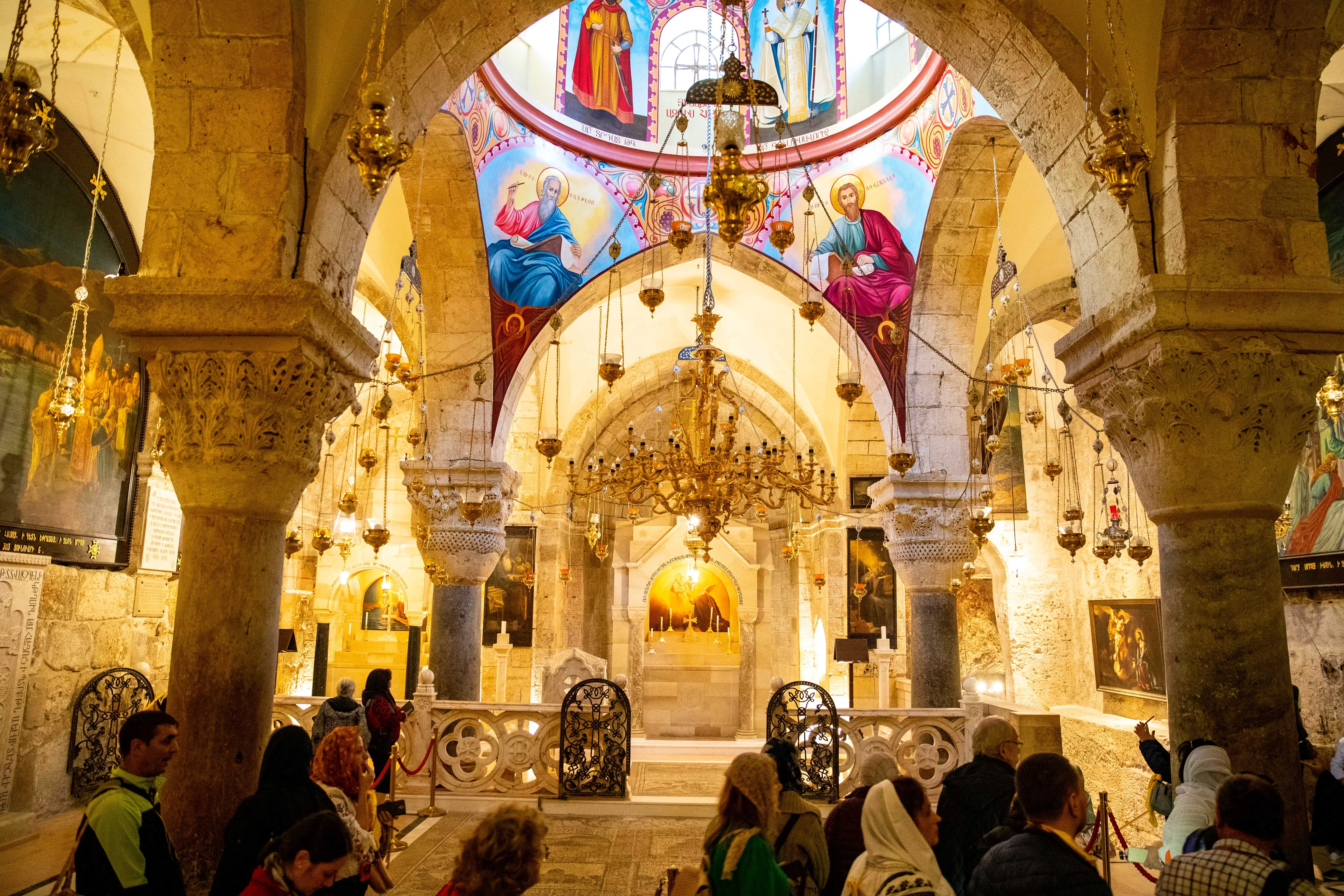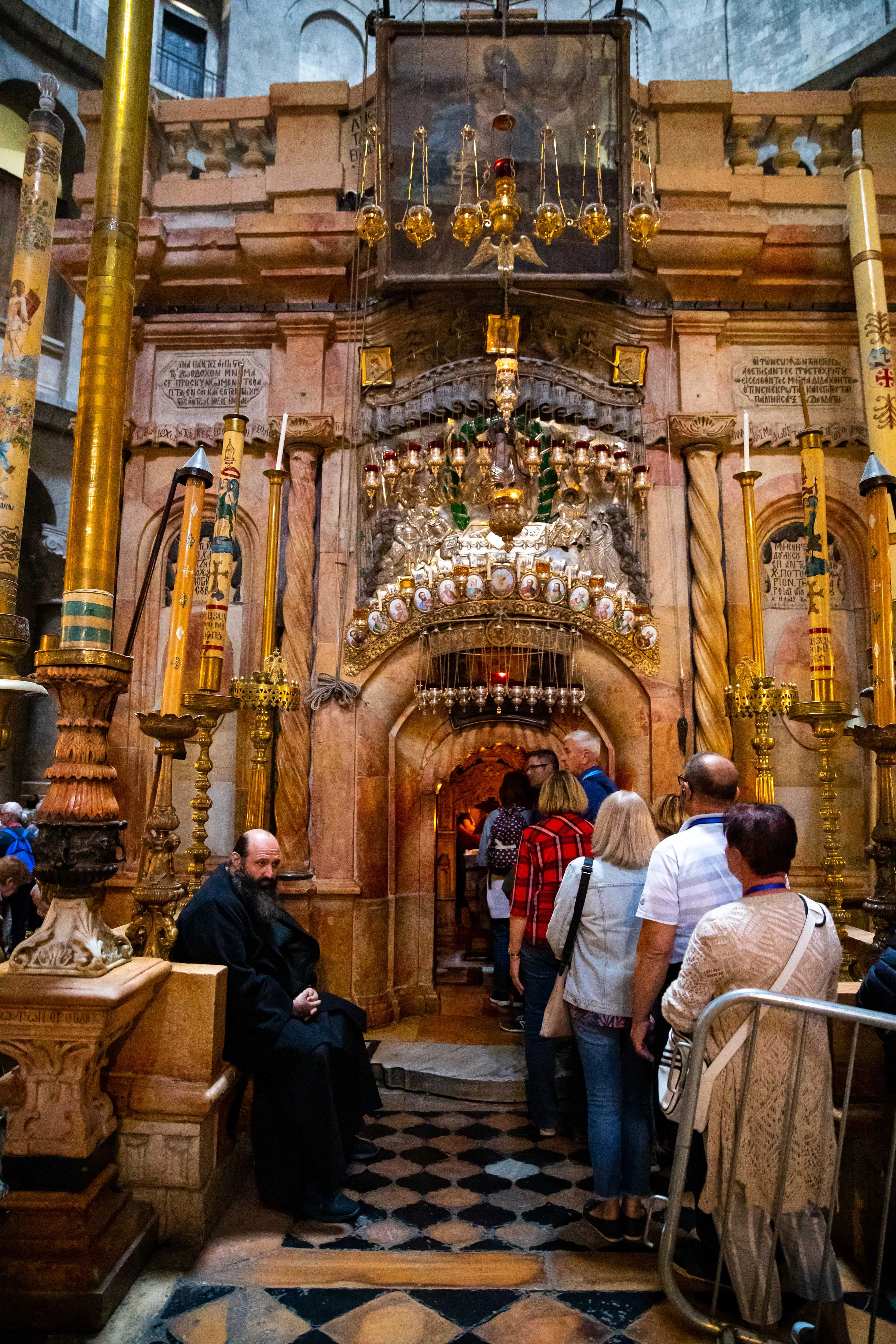 教堂内每一幅油画、每一块砖瓦都有着自己的故事,步入其中仿佛翻开了《圣经》中最为悲壮的篇幅。圣墓是一个石洞,不足2米宽。4世纪初,君士坦丁大帝的母亲希拉娜太后巡游至耶路撒冷,下令在耶稣蒙难和埋葬处建造圣墓大教堂,位于三处圣迹之上,圆形大厅中央是安葬耶稣的洞穴遗址。洞穴周围的岩石全被削去,圣墓则被围在一个被称为Edicule(意为“小房子”)的建筑内。