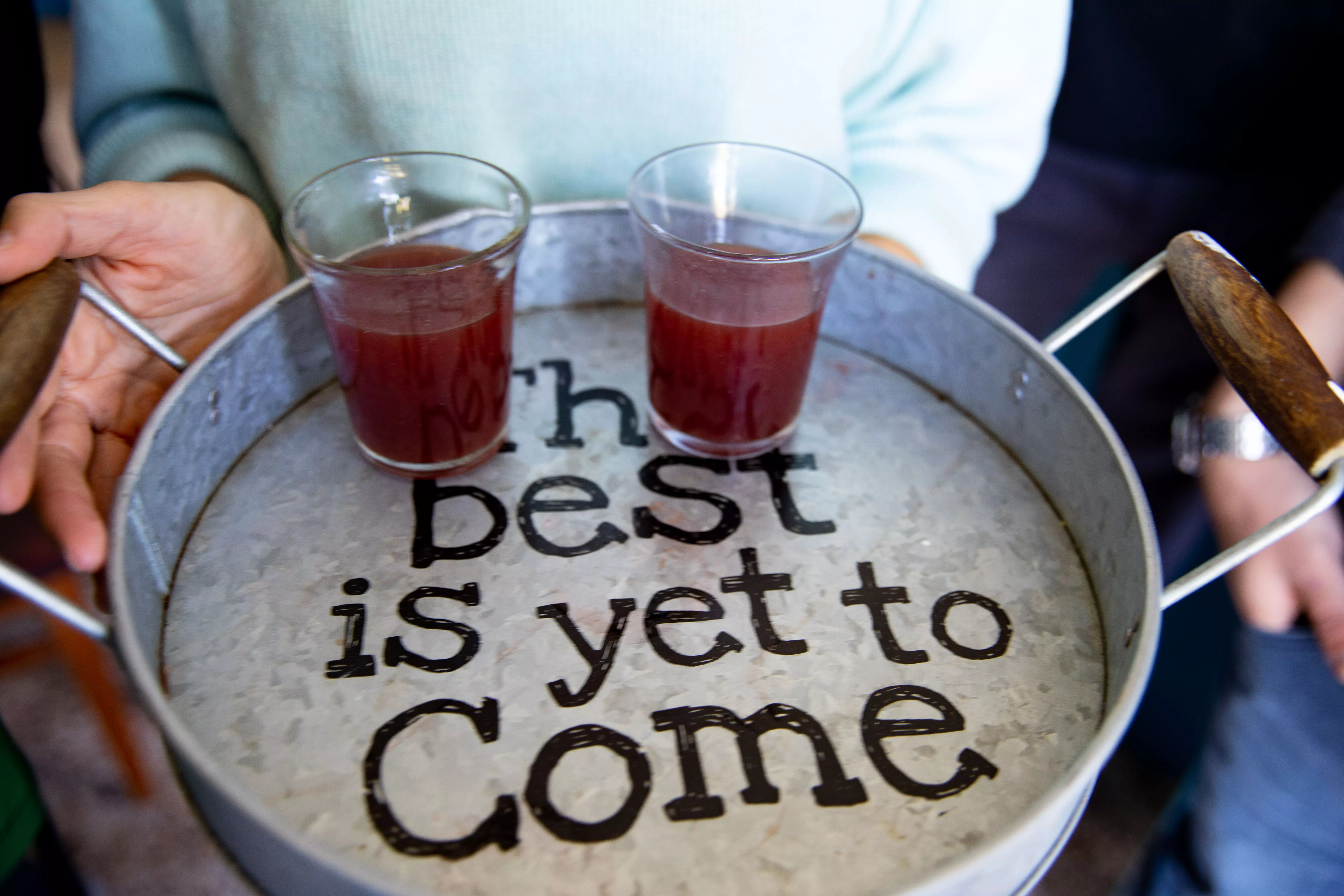 我们在耶路撒冷的几天,一路探访了很多有趣的餐厅,挑选几家重点分享。首先是旅神在耶路撒冷吃的这第一口——因为飞机到达以色列已是深夜,次日行程首站便是这家开在半山腰的小餐厅Atalya’s House。欢迎饮品托盘上的这句话深得我心:“The best is yet to come”。