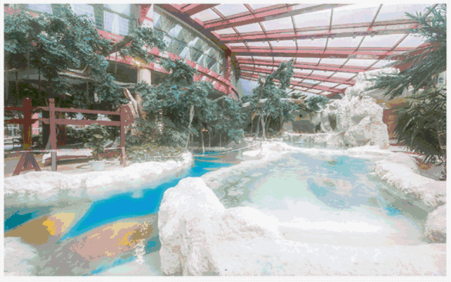 泳池里的水滑梯、温泉地道、水上世界;温泉区专门为孩子们设置的温水池,都具备趣味性。