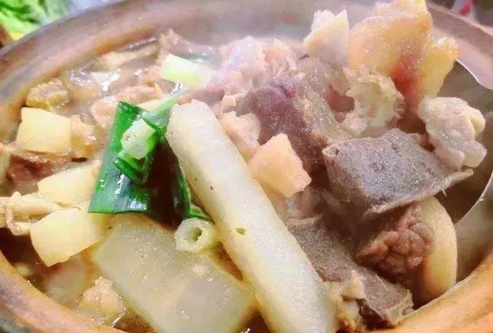 每年始兴人家都会挖新鲜竹笋腌制,而食用酸笋也独有心得,翻、炒、烹、煮结合其他食材食用,滋味变幻中显示的是每个人对食物的理解。始兴罩鱼头煲,将鱼头、酸笋的滋味在翻炒中激发出来,加点姜,去除鱼腥,浓郁的味道刺激人对食物的渴望。