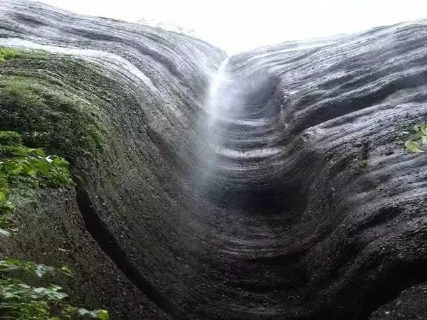 山坡沟壑纵横,把整个山坡分裂成一列列的土堆,土堆在雨水冲刷下,形成嵴状,两边布满沟壑,远看如连绵的山脉。