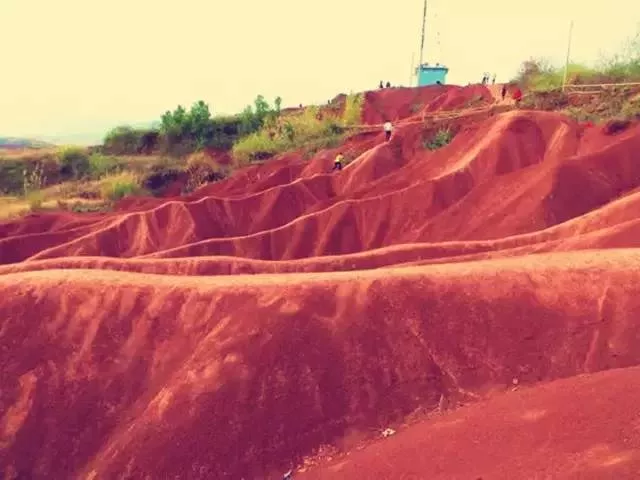 韶关始兴红土地原是座丘陵,山坡一面完全失去了植被,裸露出暗红色的土质层。成就了这片南岭红沙漠,惠州的小伙伴们不出省就可以欣赏到媲美大西北的荒凉豪迈啦~